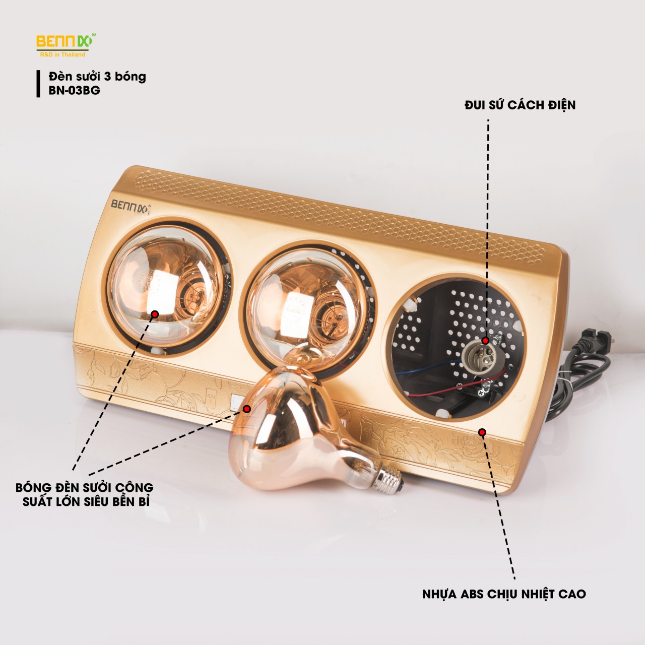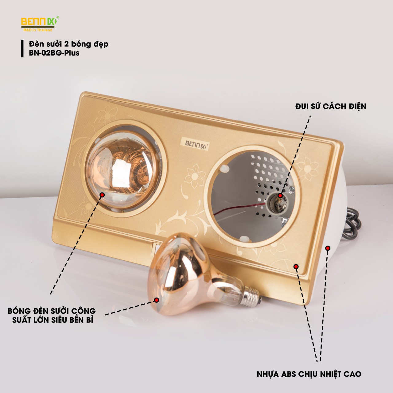 Đèn sưởi nhà tắm bóng đèn sưởi nhà tắm BennixThailand chống cháy nổ tiết kiện điện bảo hành 3 năm