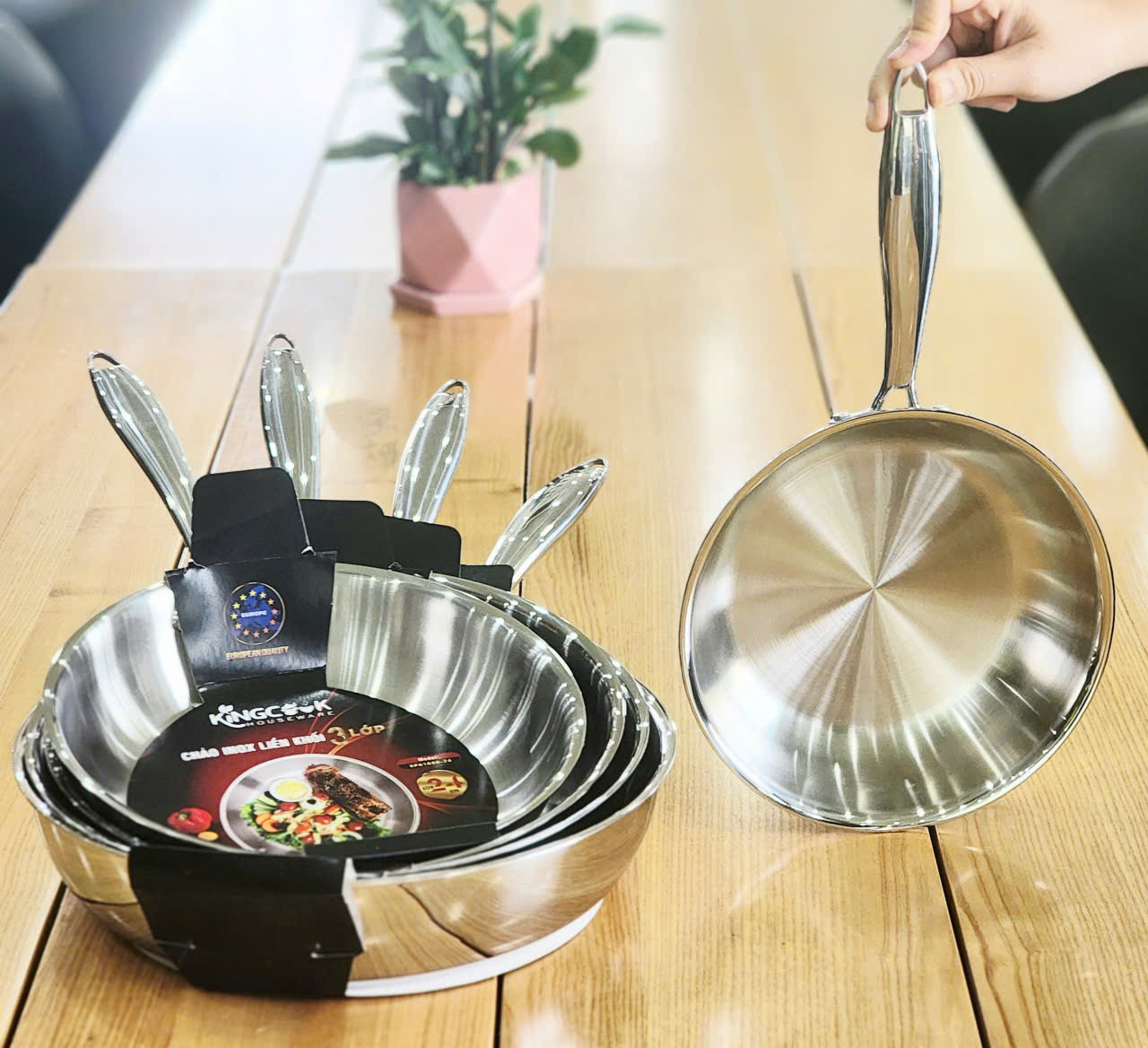 + Trong xu hướng lựa chọn đồ dùng nhà bếp cao cấp để nâng tầm chất lượng sống, một chiếc chảo không chỉ cần đẹp và bền mà còn phải an toàn cho sức khỏe và tối ưu hiệu quả nấu nướng. Chảo inox 3 lớp liền khối Kingcook chính là sự lựa chọn lý tưởng, đáp ứng đầy đủ những tiêu chí khắt khe về thiết kế, chất liệu và công năng, mang đến trải nghiệm nấu ăn chuyên nghiệp ngay tại nhà.